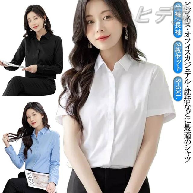 定番 長袖 レディース ブラウス ビジネス シワになりにくい 半袖シャツ 事務服 ワイシャツ シャツ インナー 2枚セット スーツ オフィス 夏 半袖 トップス 通勤 大きいサイズ 白 春夏秋 仕事 フォーマル 制服 リクルート