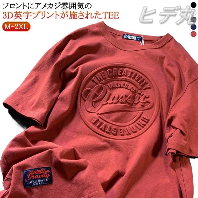 古着風 カットソー 半袖 アメリカン 無地 メンズ 送料無料 英字 3Dプリント おしゃれ シンプル レトロ トップス tシャツ 送料無料 ストリート カジュアル ワンポイント 大きいサイズ ネイビー 紺 グレー 白