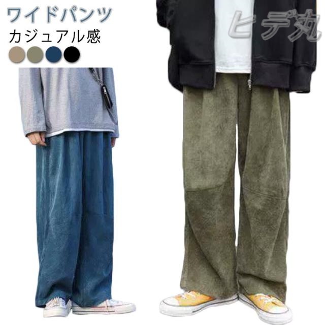 ボトムス ワイドパンツ メンズ パンツ L ゆったり ズボン ゴムウエスト カジュアル ブルー 無地 黒 全4色 カーキ M 秋服 ワイドパンツ XL ワイド レディース ユニセックス LL 秋冬 秋物 冬服 冬物