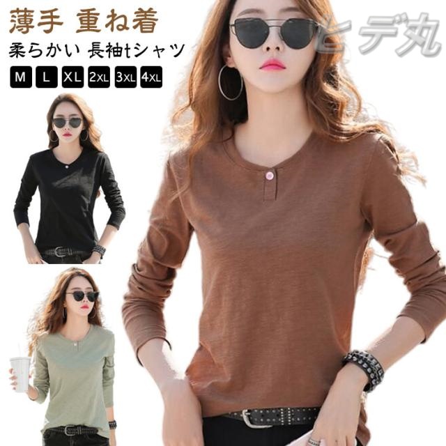 ロンt ホワイト 重ね着 細見え カットソー 長袖Tシャツ Tシャツ ロングTシャツ ティーシャツ 長袖tシャツ レディース 薄手 レイヤード トップス ロンティー ブラック Tシャツ パープル ブラウン