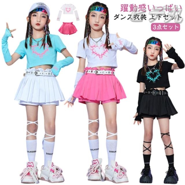 キッズ キッズ ダンス k-pop チアガール へそ出し セットアップ チア チア 女の子 半袖 白 ショート丈 トップス 韓国 肩だし アームカバー お洒落 トップス スカート ヒップホップ ジャズダンス 発表会 演出服 練習着