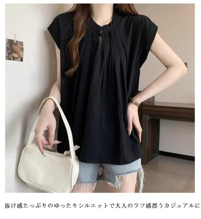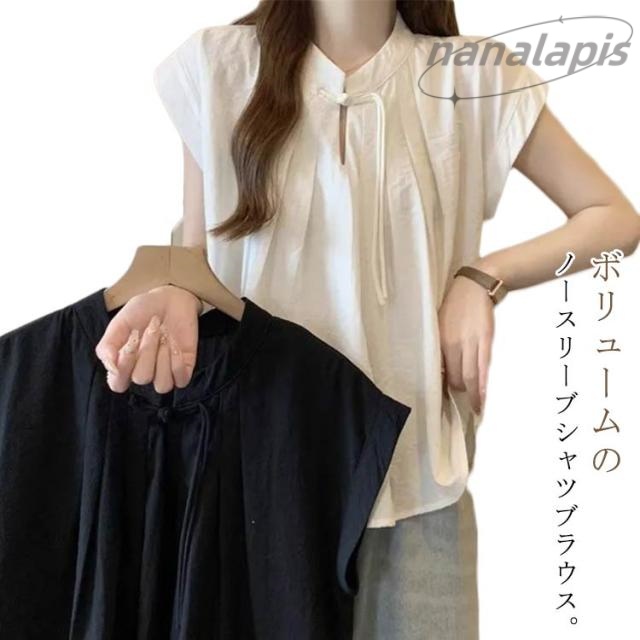 シャツ レディース ノースリーブ 無袖 リラックス フレンチスリーブ 中国風 シャツ トップス 通気 可愛い 体型カバー 中華風 かわいい 夏服 きれいめ 春 夏 ゆったり ルームウェア 薄手 春夏 無地 大きいサイズ アウトドア