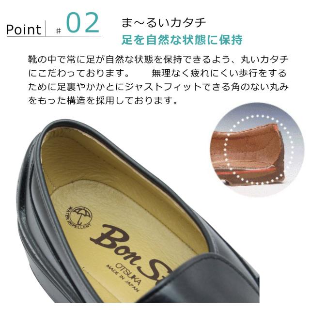 ボンステップ Bon Step メンズ レザー ビジネスシューズ 5052 本革 幅広 4E スリッポン コンフォート カジュアルシューズ プレーントゥ 日本製 大塚製靴 ブラック 黒 【お取り寄せ商品】