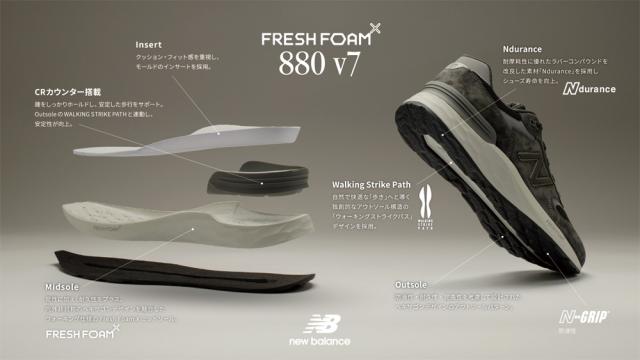 NBウォーキングの最高位モデルが Walking Fresh Foam X 880 v7 にバージョンアップ。