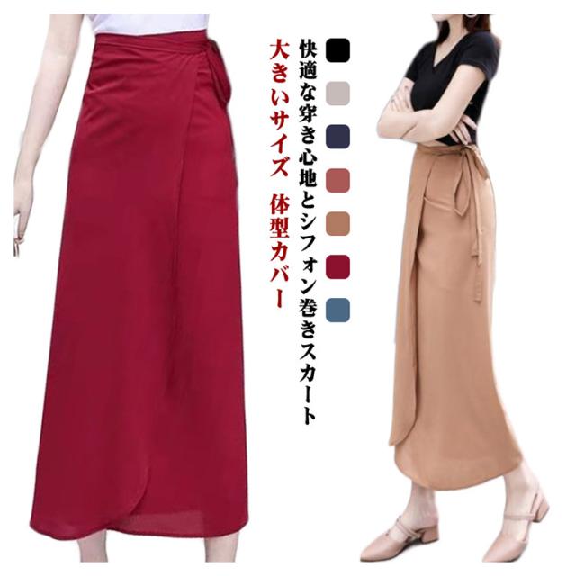 シンプル レディース ミモレ丈 ロング 巻きスカート 夏 シフォン ロング丈 ダンス 大人 無地 ビーチグッズ 20代 女性 ラップスカート 巻きスカート 夏 スカート 30代 40代 50代 UVカット フレアスカート 海 大きいサイズ