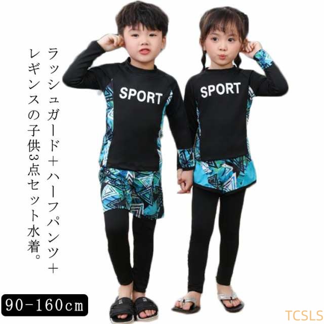 ラッシュガード キッズ 上下セット 女の子 男の子 水着 3点セット 長袖 セットアップ セパレート 150 小学生 長ズボン こども レギンス ジュニア マリンウェア オシャレ 120 110 幼児 子供 スイミングウェア 水着