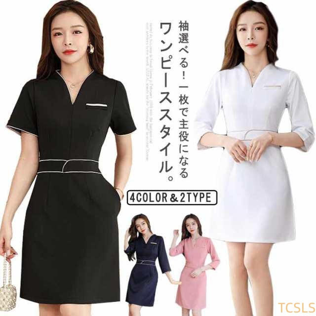 エステ ワンピース ユニフォーム 白 エステ 制服 サービス 美容師 ホワイト 受付 エステサロン ヘッドスパ サロン 女性用 半袖 七分袖 作業着 歯科 美容 クリニック 作業服 エステワンピース おしゃれ ブラック ネイビー ピンク S M L XL 2XL 3XL 4XL