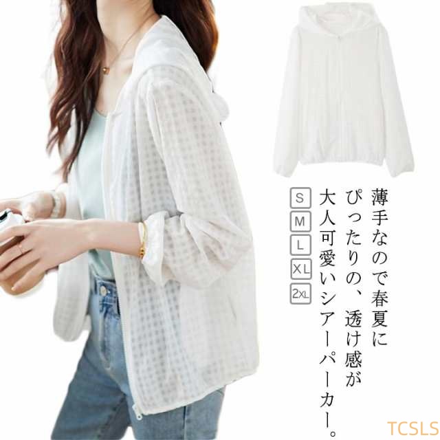シアー パーカー カーディガン レディース パーカー UVカット シアートップス チェック柄 シアー素材 uvパーカー 透け感 薄手 おしゃれ 長袖 日よけ 紫外線対策 長袖 おしゃれ シンプル かわいい 羽織り ブルゾン 体型カバー