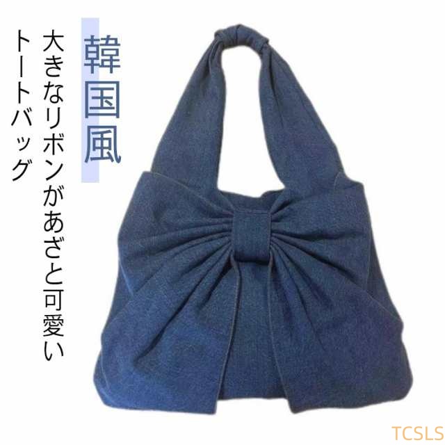 ビッグリボン トートバッグ デニム 可愛い リボン 肩掛け 丈夫 トート サブバッグ デイリーバッグ A4サイズ 大容量 無地 可愛い レッスンバッグ 大きめ 通勤 通学 塾 シンプル りぼん 韓国風 デニムバッグ かわいい 旅行 ギフト プレゼント 送料無料
