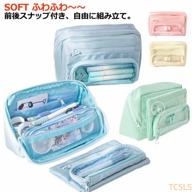 ペンケース 大容量 シンプル ジップボックス ペンポーチ おしゃれ 淡色 くすみカラー 筆箱 ポーチ型 トレー型 取り外し小物入れ ペン100本収納可 多機能 男の子 女の子 キュービックス 文具 小学校 高学年 中学生 大学生 大人 韓国 カラバリ 送料無料