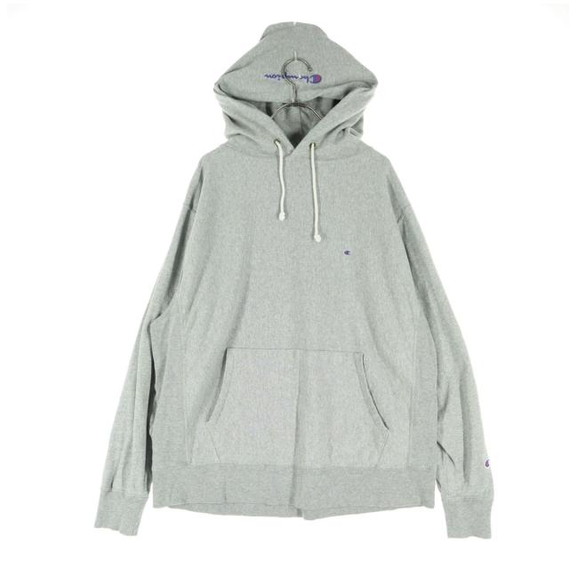 美品 チャンピオン ワンポイントロゴ 長袖 パーカー S グレー Champion メンズ