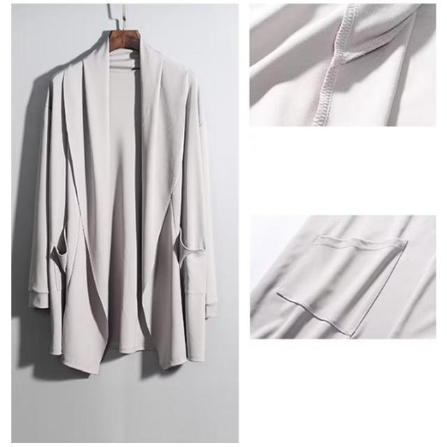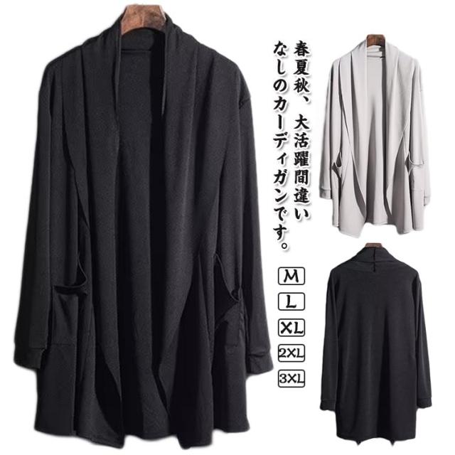 ショールカラー 秋 メンズ テーラードジャケット 薄手 羽織り カーディガン 襟付き ロングカーディガン 春 接触冷感 ライトアウター シンプル 無地 長袖 カーディガン 夏 UVカット 冷房対策 襟付き 日焼け防止 秋服 父の日 プレゼント
