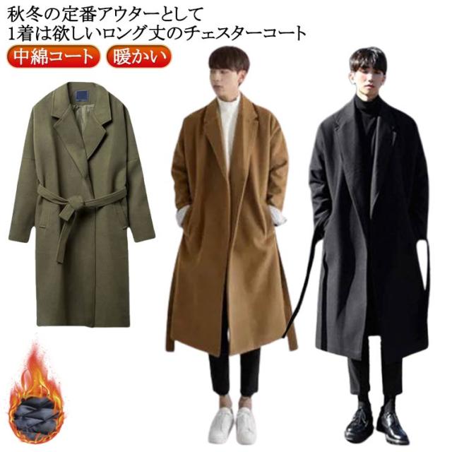 メンズ チェスターコート 暖かい 中綿 コート アウター ジャケット ラシャコート ウール オーバーサイズ ドロップショルダー ロング丈 無地 防寒 フェイクウール チェスターコート ビジネス カジュアル 通勤 通学 ゆったり 冬服 秋服 秋 冬 秋冬 着回し