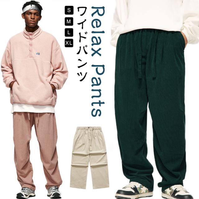 コーデュロイ パンツ コーデュロイ ワイドパンツ メンズ イージーパンツ リラックス パンツ ウエストゴム パンツ ストリート系 ストレートパンツ カジュアルパンツ ロングパンツ バギーパンツ アメカジ 彼氏 男性 秋 冬 送料無料