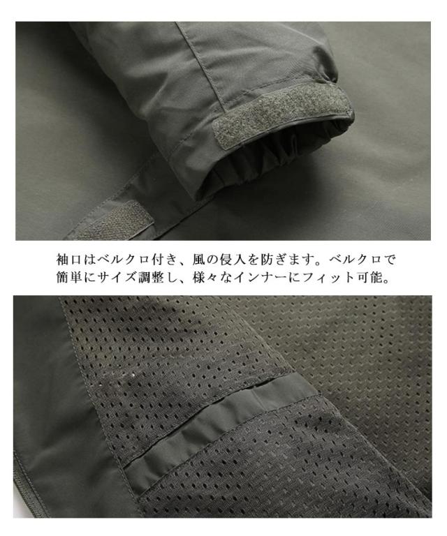 | はっ水 フード脱着式マウンテンパーカー 生地表面に撥水加工を施しているため汚れがつきにくく、雨粒のような水滴は弾かれて滑り落ちていくのでちょっとした雨の中でも気にせずにご着用いただけます。 着膨れせずにすっきりとしたシルエットでいつでも気軽に羽織れる万能なライトアウターに仕上げています。 すベての外ポケットにはファスナー付き、小物紛失防止、とても便利です。 袖口はベルクロ付き、風の侵入を防ぎます。ベルクロで簡単にサイズ調整し、様々なインナーにフィット可能。 | |