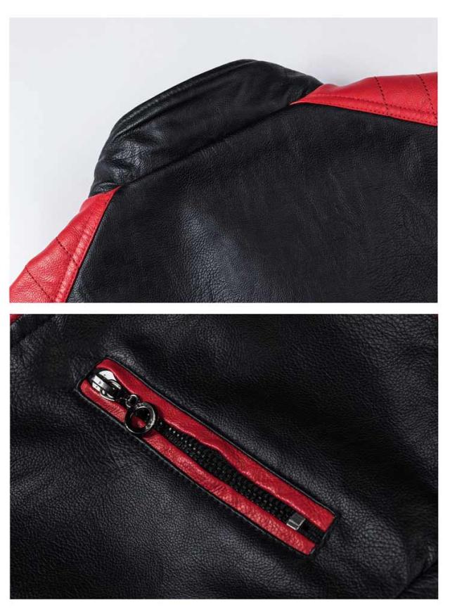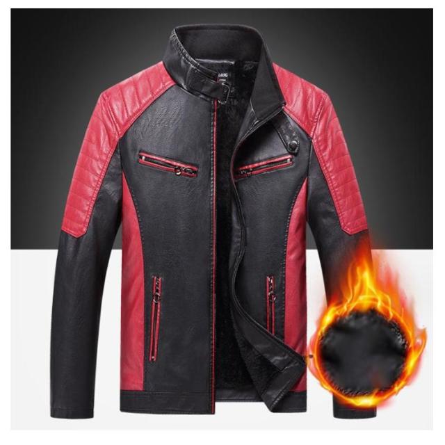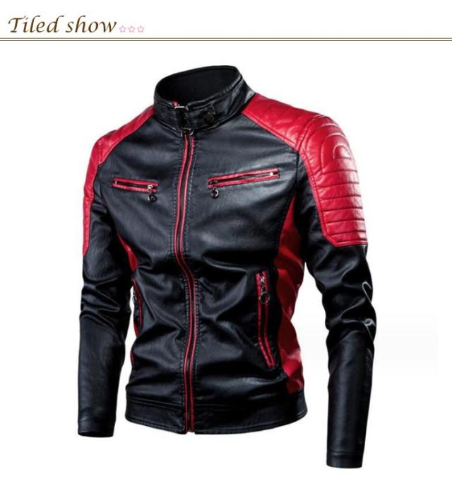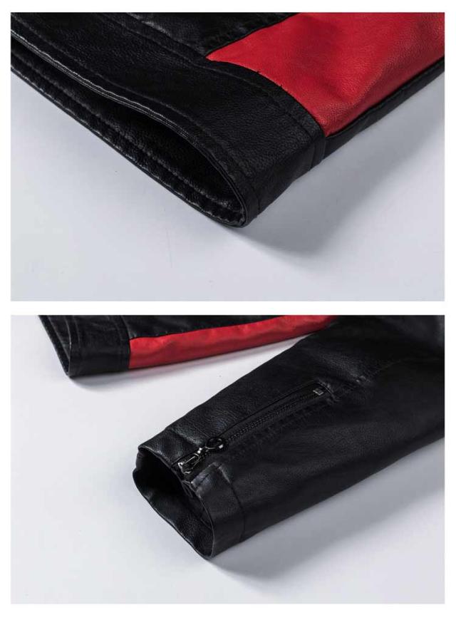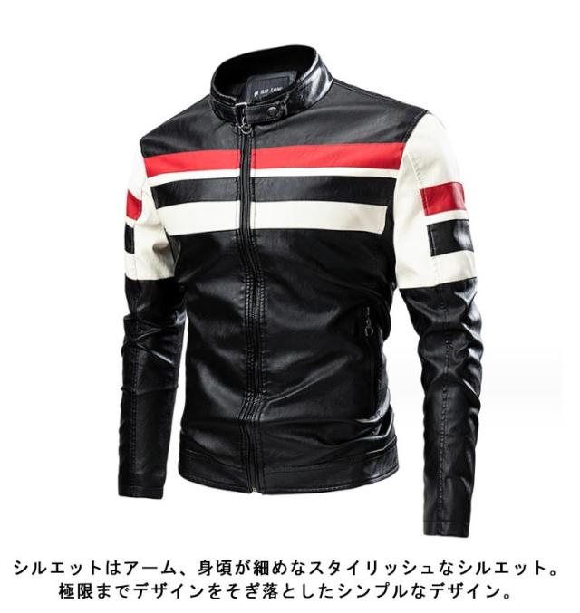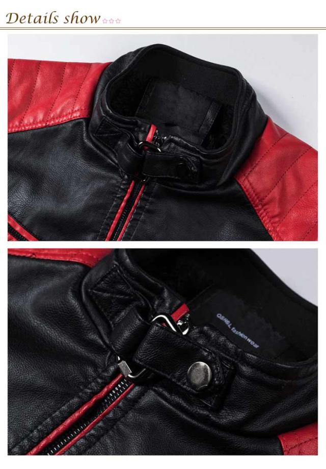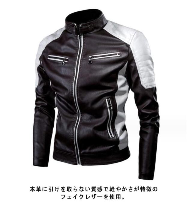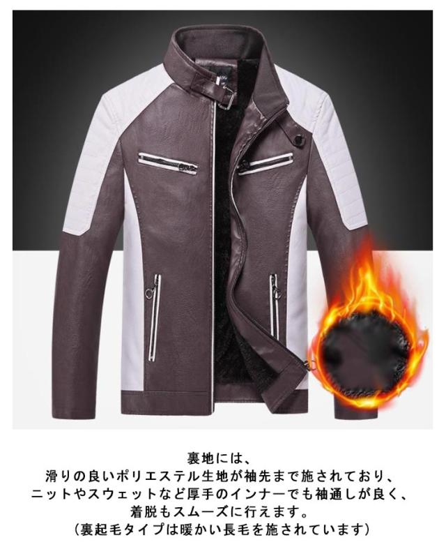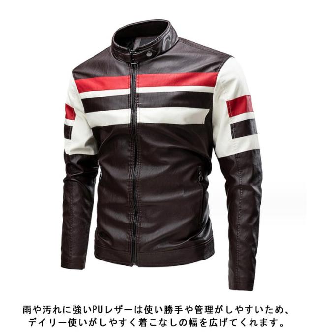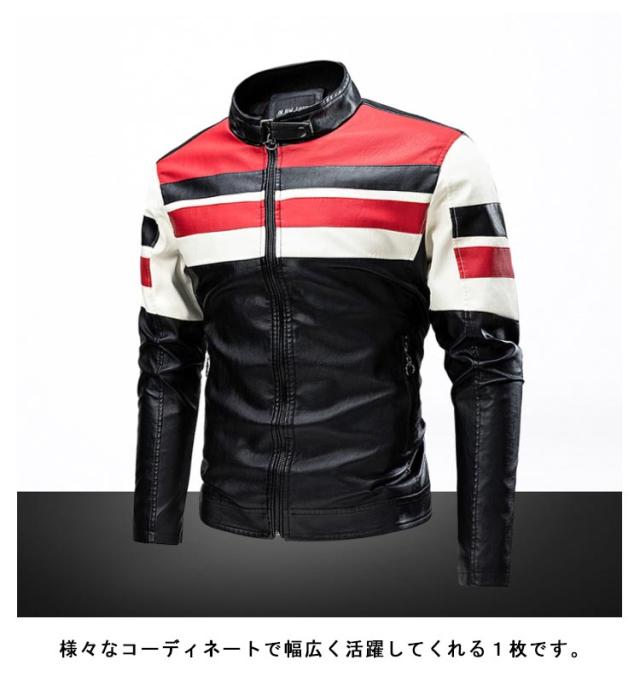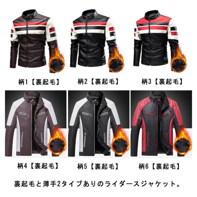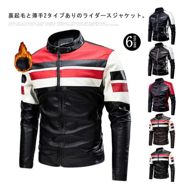 ライダースジャケット 裏起毛と薄手2タイプ バイク ジャケット 配色 立ち襟 スタンドカラー レザージャケット バイクウェア 春 夏 秋 冬 革ジャン 皮ジャン 防風 防寒 バイク用品 大きいサイズ 赤 黒 レッド コーヒー ブラック 3XL 4XL 5XL 【送無】