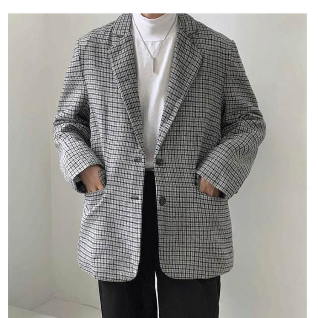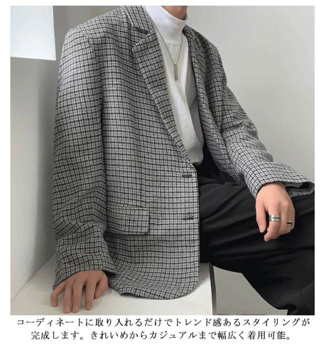 テーラード 春 裏地付き ツイードジャケット テーラードジャケット アウター メンズ 秋 チェック柄 ゆったり テーラードジャケット 2つボタン ジャケット 羽織り 2B オーバーサイズ カジュアルスーツ 大きいサイズ カジュアル