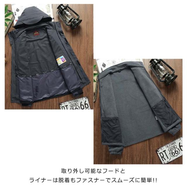ボアライナー(取り出し可) マウンテンパーカー レディース 登山 ボアライナー(取り出し可) メンズ アウトドアジャケット フード付き 裏起毛 ジャケット 撥水 トレッキング 防風 春 秋 冬