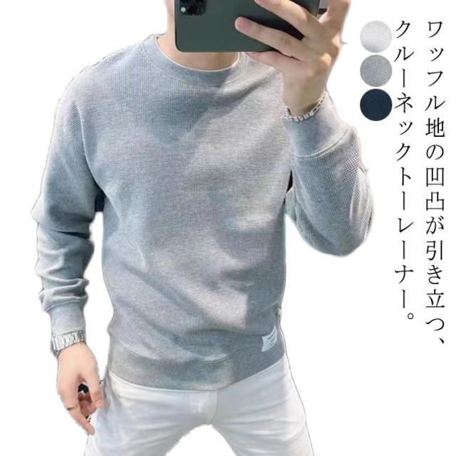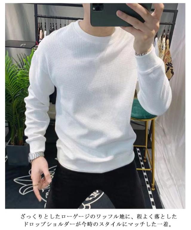 長袖 ワッフル 長袖 ワッフル 運動着 カジュアル スポーツウェア ルームウェア トップス トレーナー メンズ メンズトレーナー 40代 スポーツ 無地 レイヤード 服 秋服 春服 部屋着 おしゃれ キレイめ シルエット 20代 30代 メンズトレーナー 春 秋 冬 秋冬
