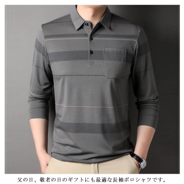 ポロシャツ メンズ 長袖 トップス 春 秋 冬 綿 コットン ゴルフシャツ ボーダー柄 Tシャツ 長袖ポロシャツ ゴルフウェア ゆったり 大きいサイズ 男性 紳士 ファッション 通勤 ビジネス おしゃれ カジュアル スポーツウェア 父の日 プレゼント ギフト M-4XL