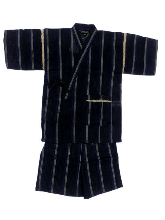 甚平 子供 キッズ 男の子 綿100% 日本製生地 じんべい 上下 祭 甚平 部屋着 パジャマ 子供甚平 130cm 紺地 子持縞柄 No.113