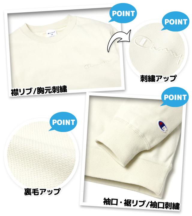 【送料無料】男児 ジュニア 裏毛 長袖 トレーナー Champion/チャンピオン スウェット クルーネック 刺繍 ベーシック 子供服 男の子 140cm 150cm 160cm td-0937a-be【メール便対応】