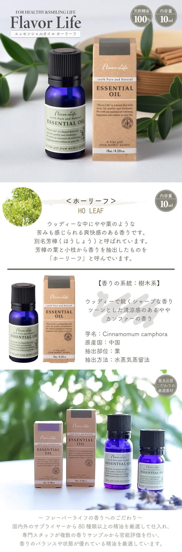アロマ 精油 フレーバーライフ エッセンシャルオイル ホーリーフ 10ml 天然精油100% 原産中国 水蒸気蒸留法 樹木系 ウッディー 芳樟 アロマオイル フレグランス アロマテラピー ヒーリング 加湿器 ディフューザー アロマスプレー