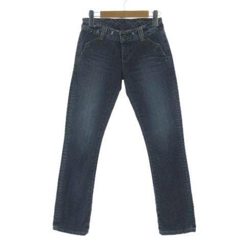 【中古】バーバリーブルーレーベル ジーンズ スリムストレート デニム ダメージ加工 ユーズド加工 ストレッチ 青 24