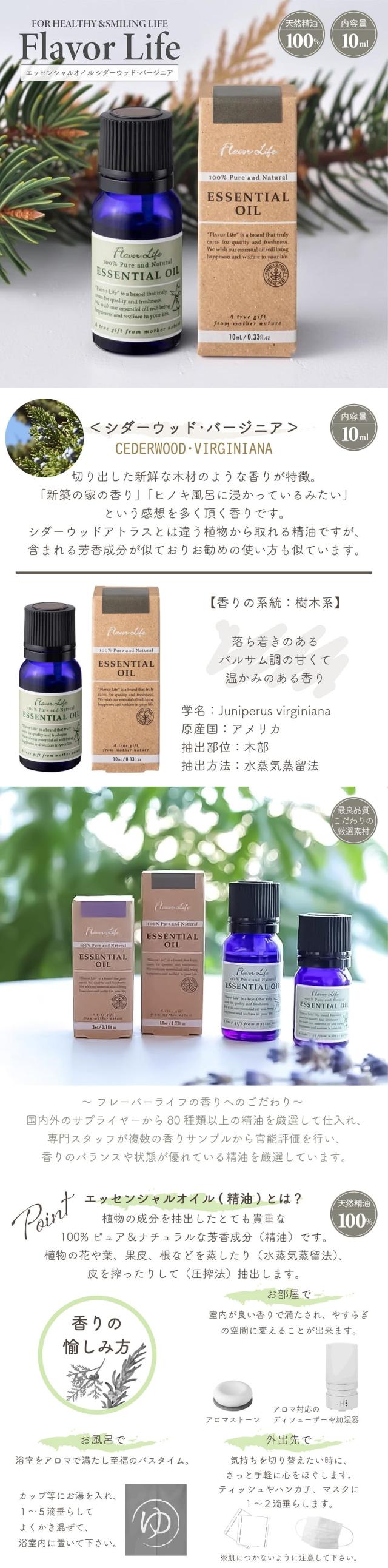 アロマ 精油 フレーバーライフ エッセンシャルオイル シダーウッド・バージニア 10ml 天然精油100% 原産アメリカ 水蒸気蒸留法 樹木系 バルサム調 アロマオイル フレグランス アロマテラピー ヒーリング 加湿器 ディフューザー アロマスプレー
