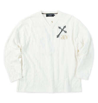 大きいサイズ GLADIATE 刺繍ブロックジャガード長袖V