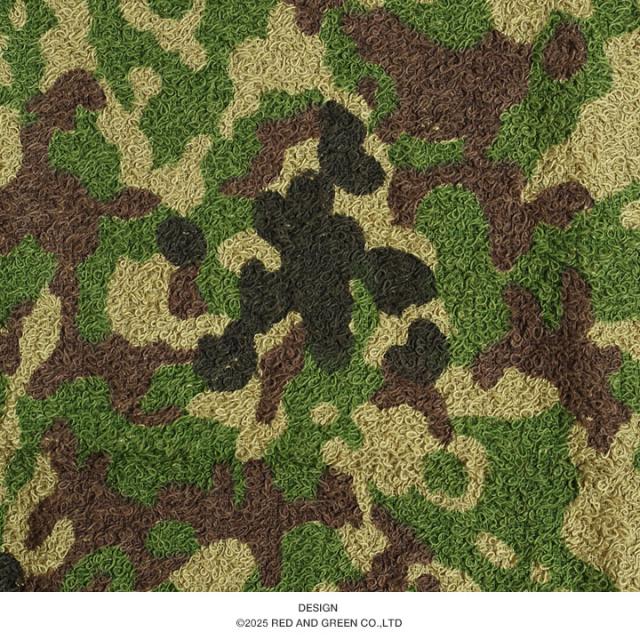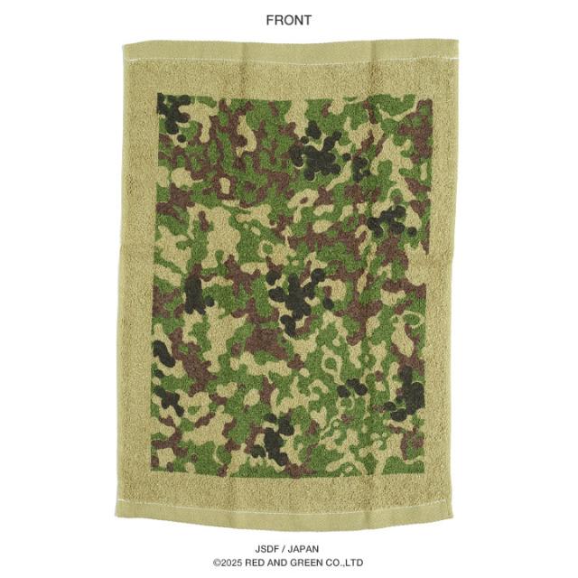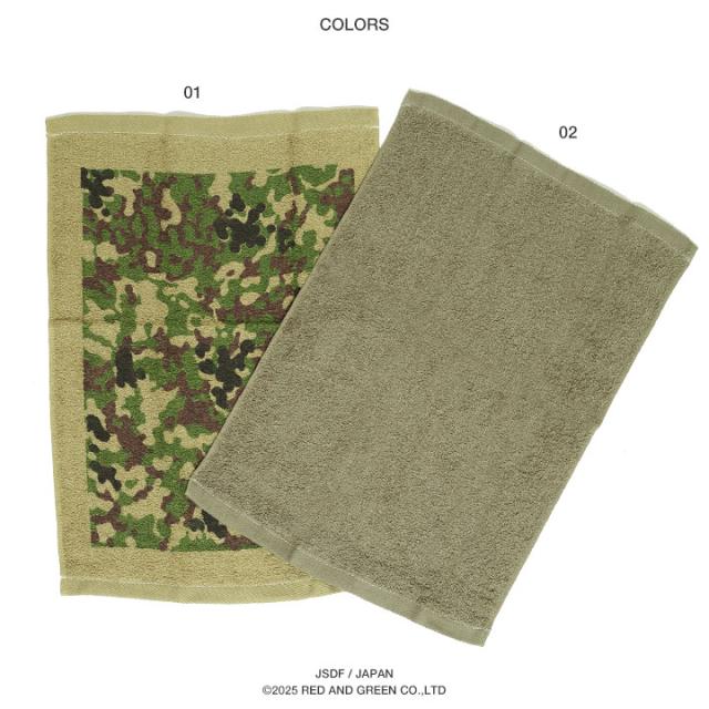 陸上自衛隊で正式採用されている現行の迷彩柄と自衛隊の基本色となるOD色を再現した、日本製のハンカチタオル。