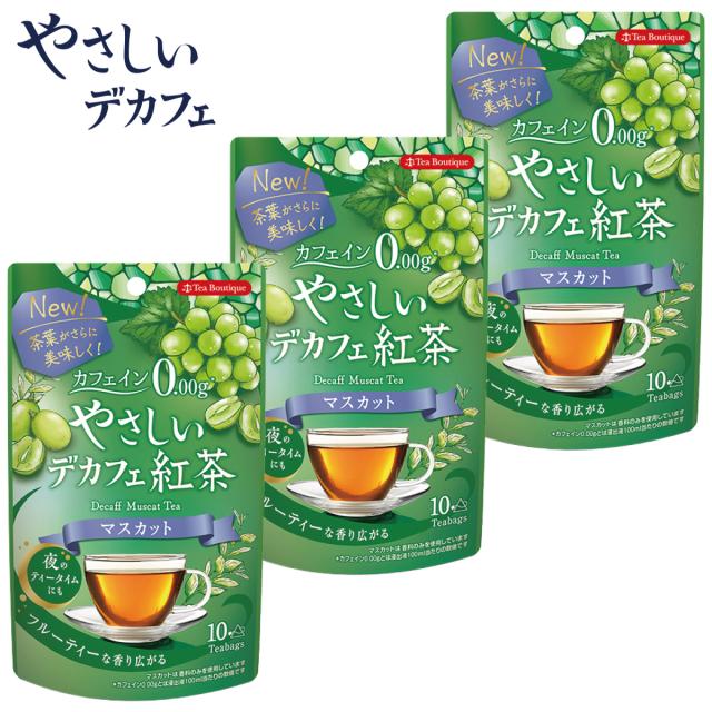『3個セット』やさしいデカフェ紅茶 マスカット (10ティーバッグ×3個) カフェインレス ノンカフェイン 紅茶 フルーツシリーズ
