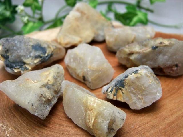 ゴールドルチル入り水晶原石 ブレスレットで人気・メジャーなゴールドルチルクォーツの原石がお得なまとめパックで入荷いたしました!! 魔除けの意味合いのあるスモーキークォーツにゴールドルチルが入るタイプや、黒いヘマタイトとルチルの結晶が剥き出しになったものなど様々です。 金運などの意味あいやその輝きから人気のゴールドルチルの原石です! ルチルというのは二酸化チタンの針状鉱物の総称で、これが水晶内に入っているとルチルクォーツと呼ばれます。 いまや知名度の高いゴールドルチルクォーツですが、原石はまだまだ流通量が少ない状態です。 シルバーワイヤーを用いたアクセサリー作成にもおススメの原石パックです! |