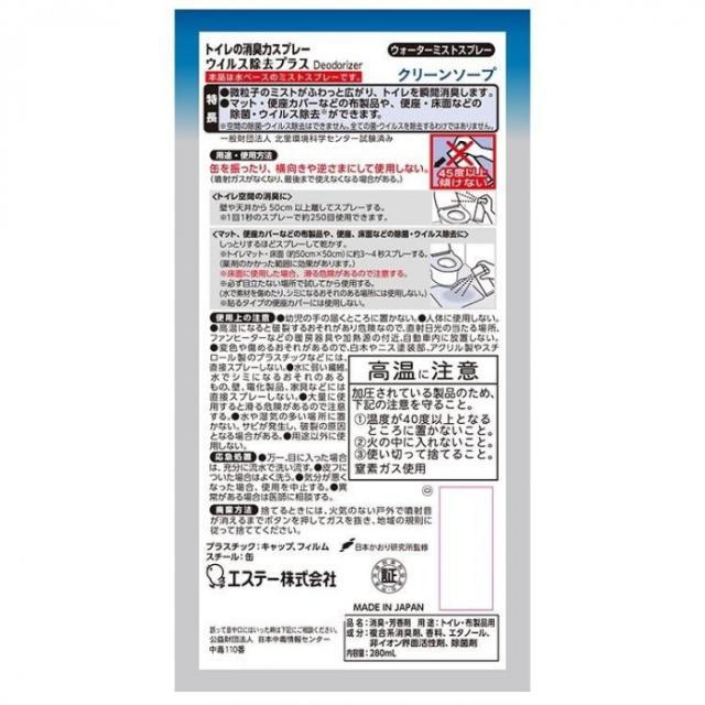 エステー 消臭力 トイレスプレー ウイルス除去 280ml ソープ 122960 |b03