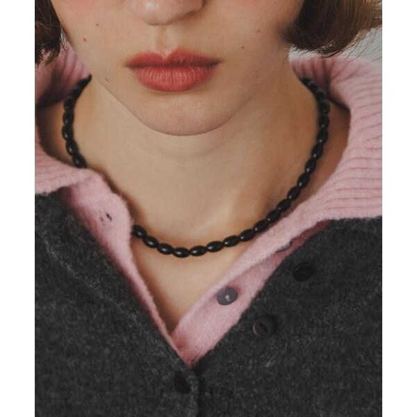 シンプルながらもブラックのビーズがしっかりと存在感を放ち、コーディネートの引き締め役として一役買ってくれます。
