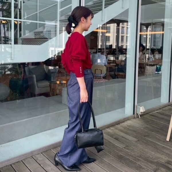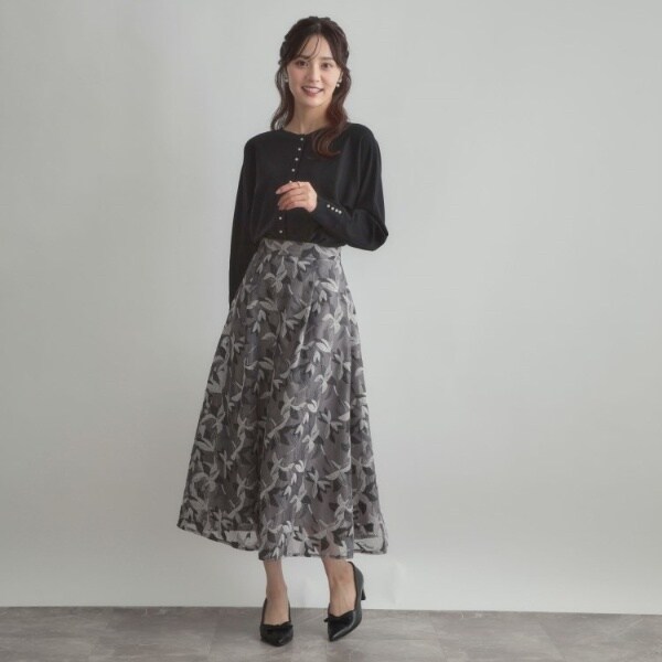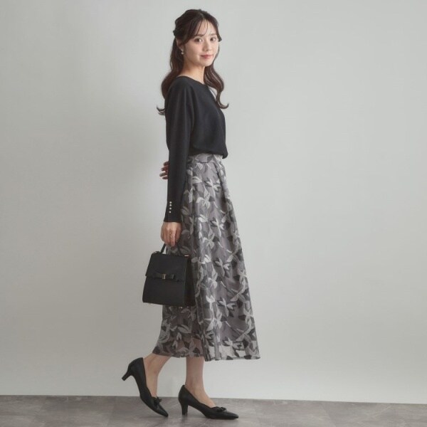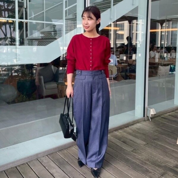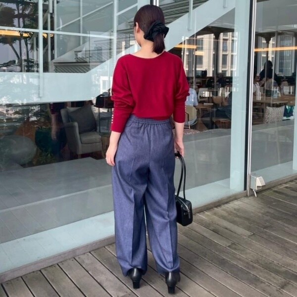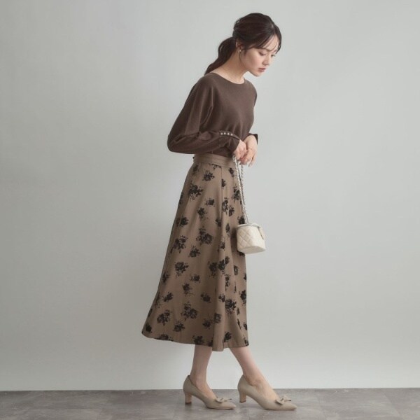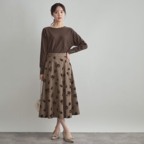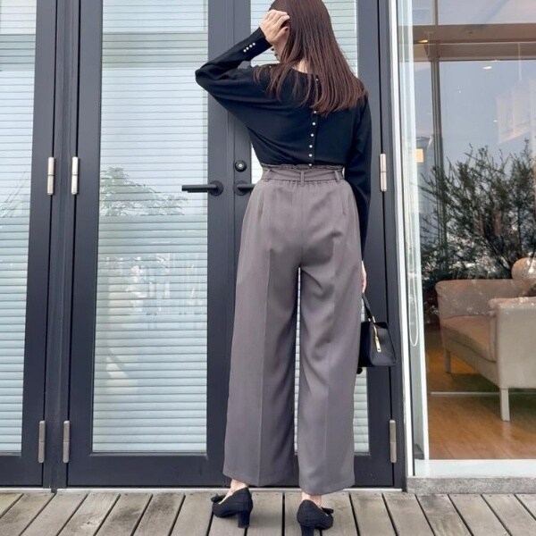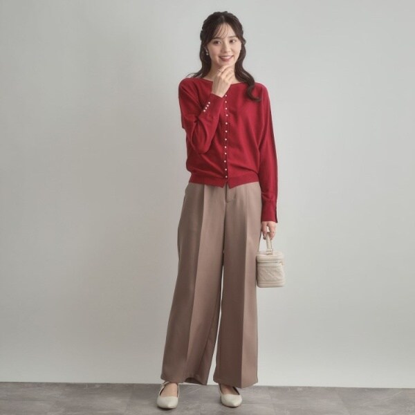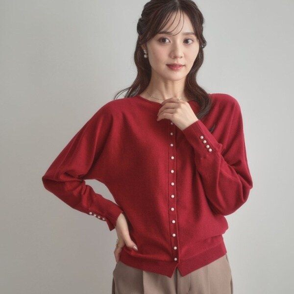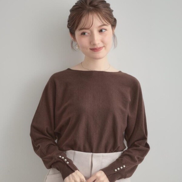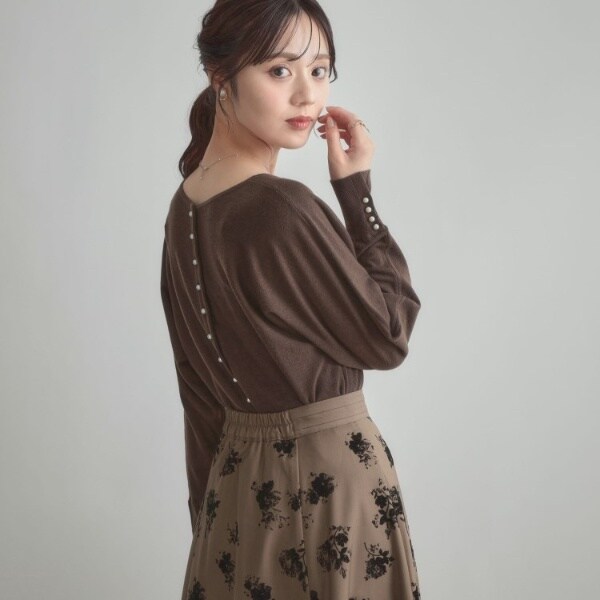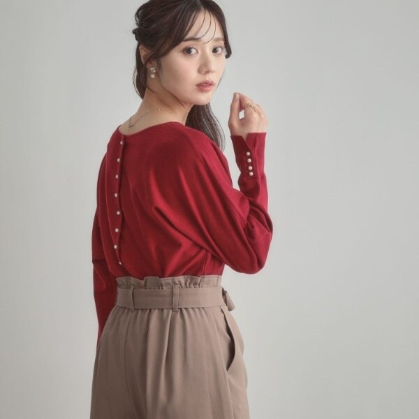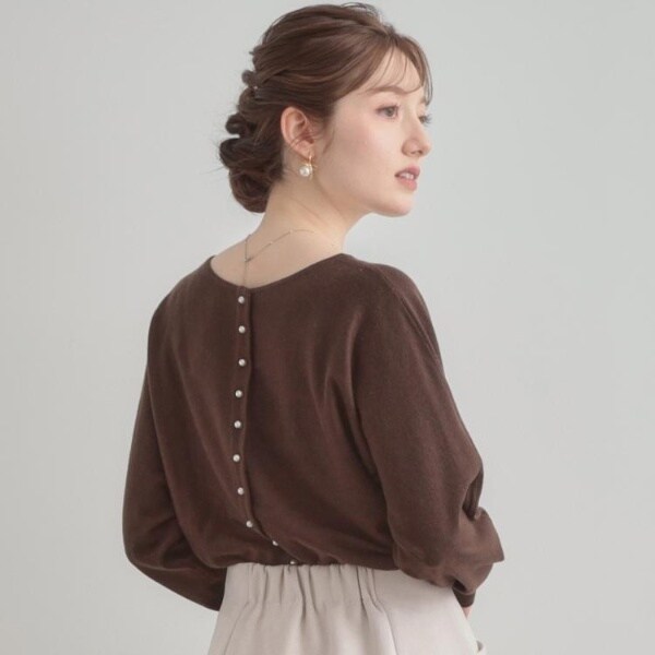 前後2WAYで着こなしの幅が広がるおすすめのニットです。細かいパール調デザインがコーディネートのアクセントになり、フェミニンムードを高めてくれます◎