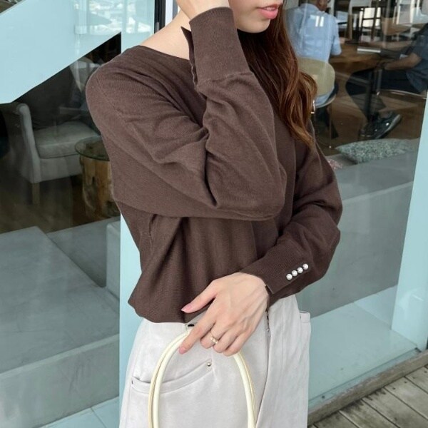 【大人上品・通勤・前後2WAY】バックパール調ドルマンニット