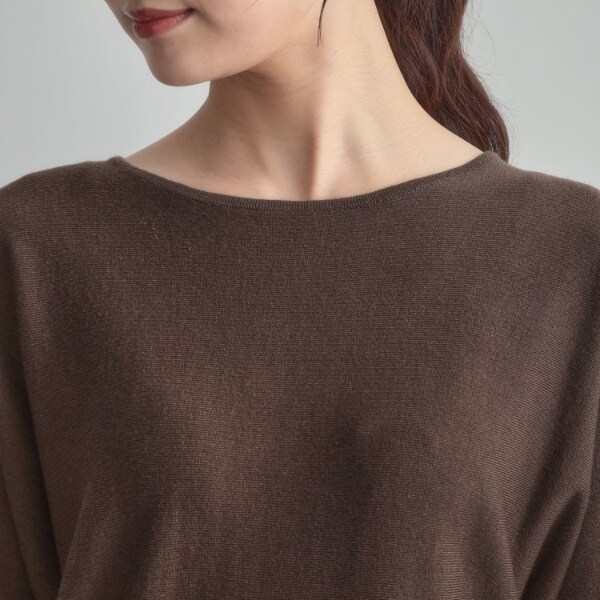 ドルマンスリーブで腕周りがゆったりした薄手のニットです