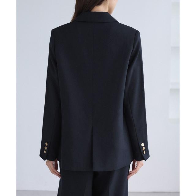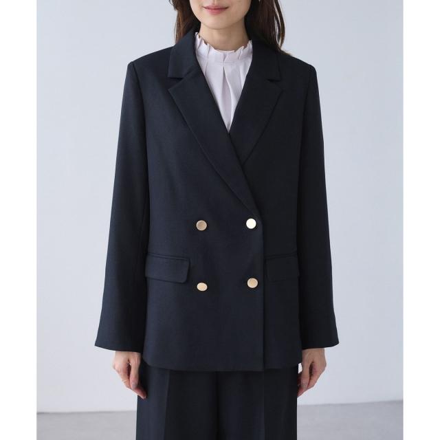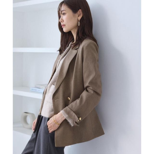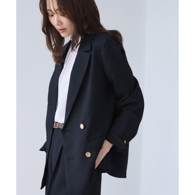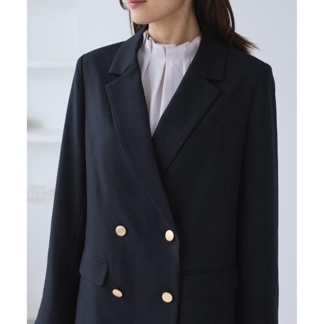 ・ダブルブレスト仕様でシルエットが引き締まり、マニッシュな雰囲気を演出。