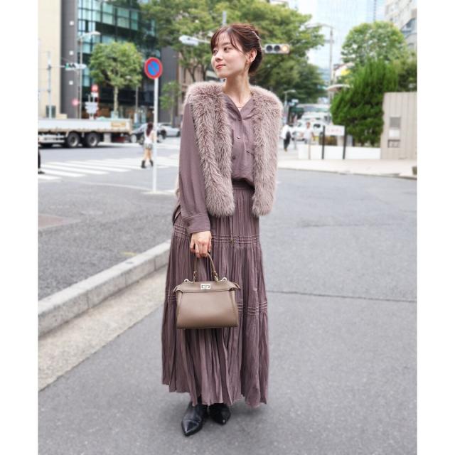 また、落ち感のあるパンツと合わせて抜け感のあるスタイルやインナーにタートルニットを着こんだり、上からファーベストを羽織ったり長いシーズン着まわしていただけます。