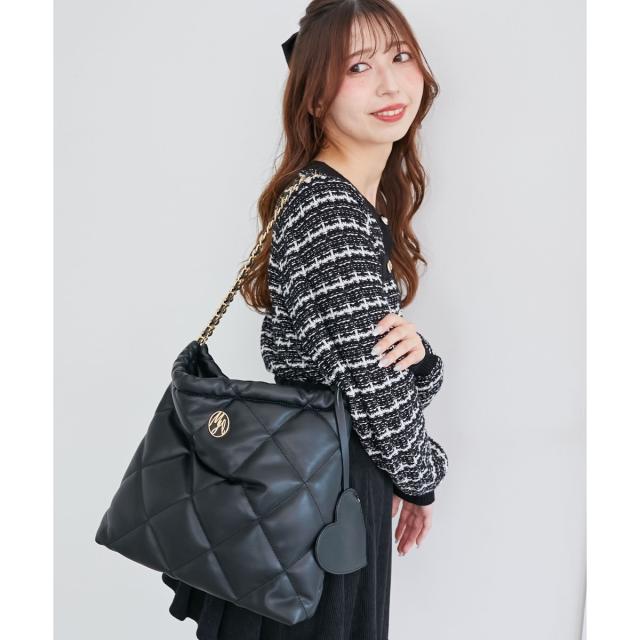 キルティングがリッチに魅せてくれるバッグ。オリジナルのチャームもアクセントに。