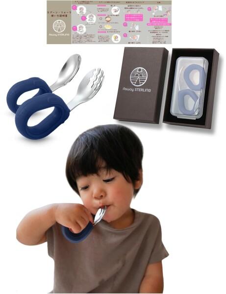 Asway STERLInG 赤ちゃん スプーン&フォーク セット 保育のプロ推奨 1歳から 練習 (アッシュネイビー)