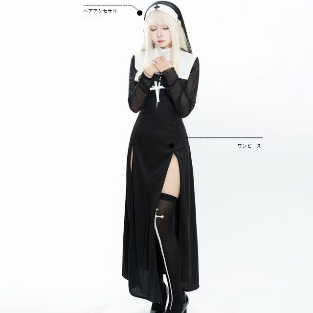 シスター コスプレ 衣装 セクシー ハロウィン 修道女 仮装 神父 コスチューム 長袖 大きいサイズ送料無料