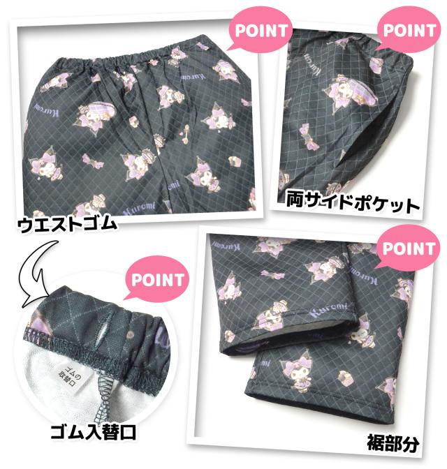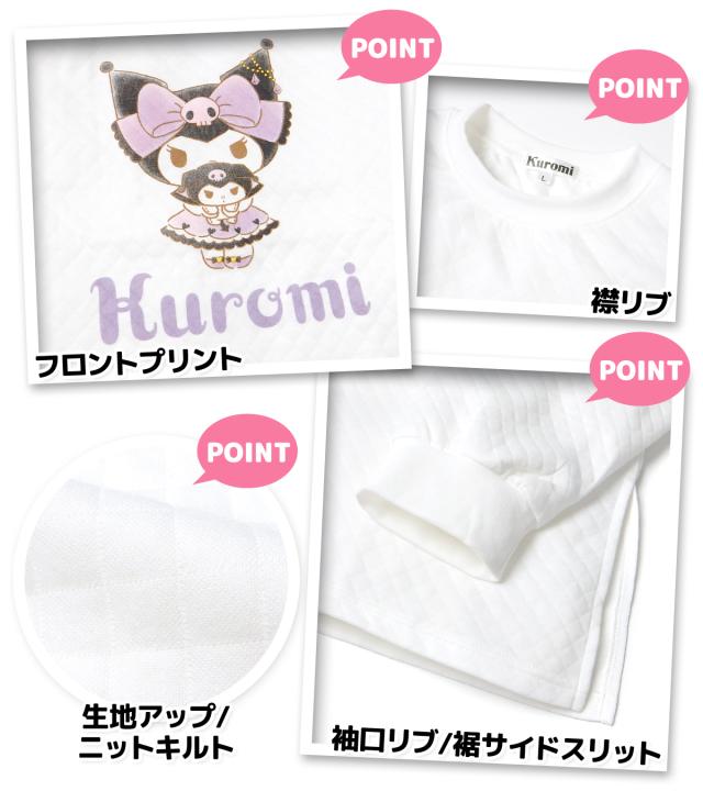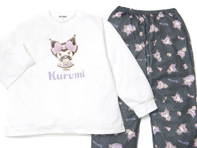 【送料無料】婦人 レディース ニットキルト 長袖 パジャマ かぶり 上下組 Sanrio サンリオ クロミ あったか素材 保温性 ゆったりシルエット 総柄 M L yg-3066b-bk