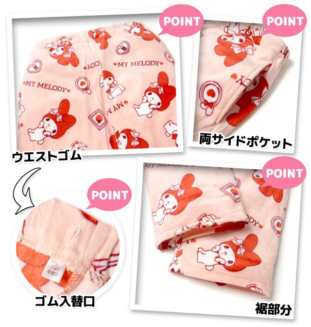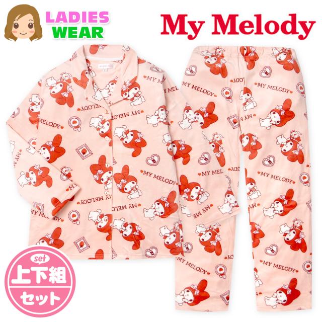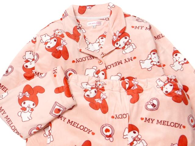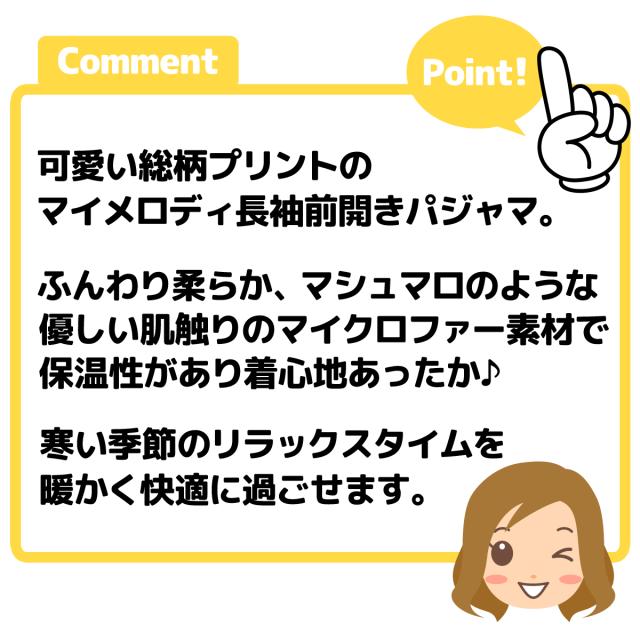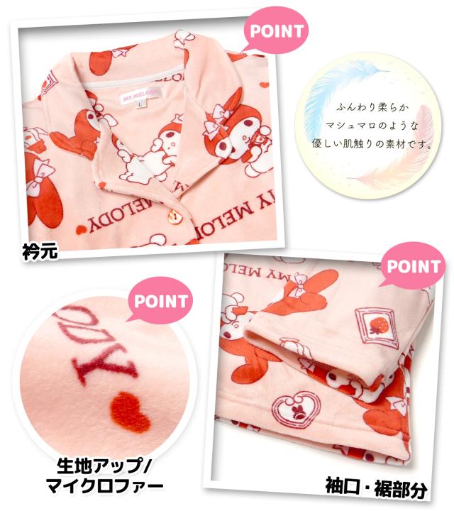 【送料無料】婦人 レディース マイクロファー 長袖 パジャマ 前開き 上下組 Sanrio サンリオ マイメロディ あったか素材 保温性 ふわふわ M L yg-3067a-rd