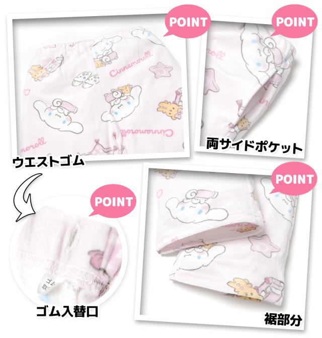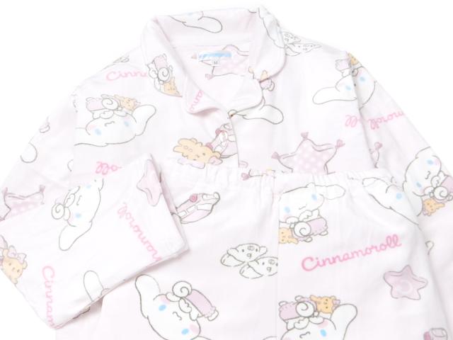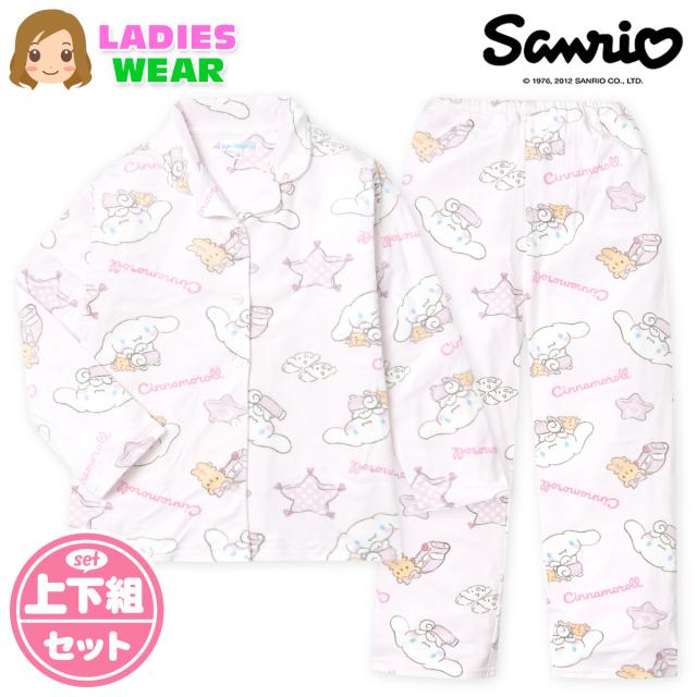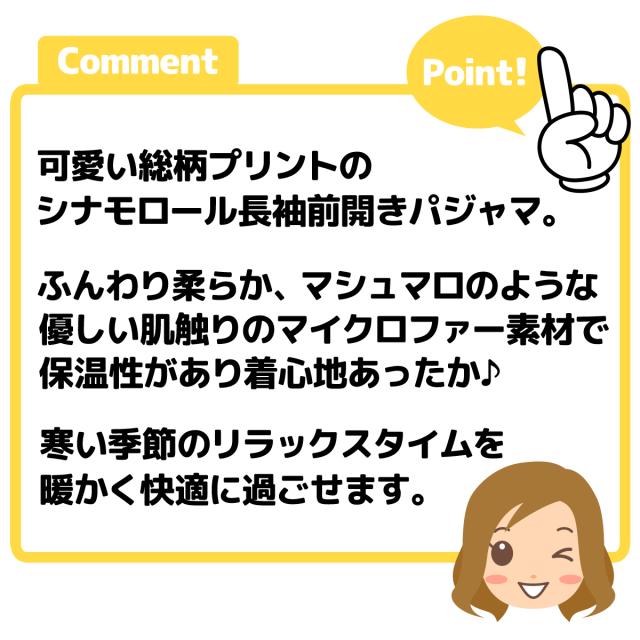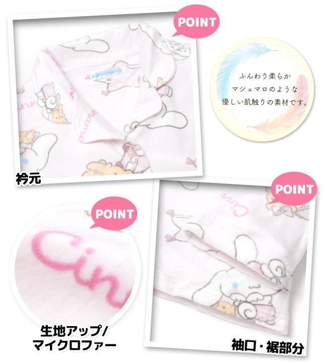 【送料無料】婦人 レディース マイクロファー 長袖 パジャマ 前開き 上下組 Sanrio サンリオ シナモロール あったか素材 保温性 ふわふわ M L yg-3068a-pk
