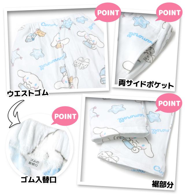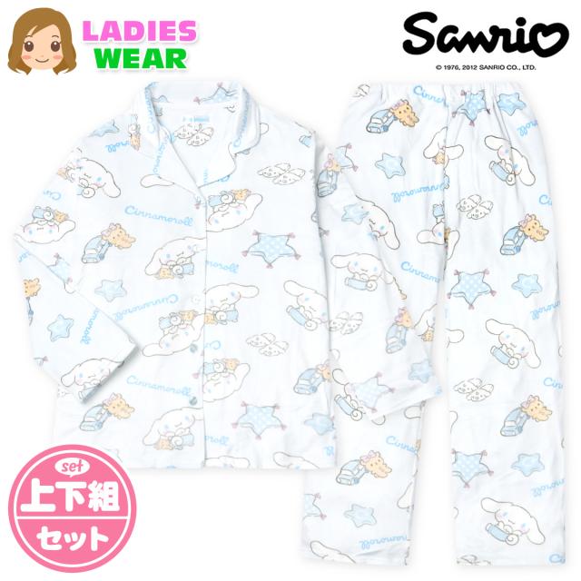【送料無料】婦人 レディース マイクロファー 長袖 パジャマ 前開き 上下組 Sanrio サンリオ シナモロール あったか素材 保温性 ふわふわ M L yg-3068b-sx