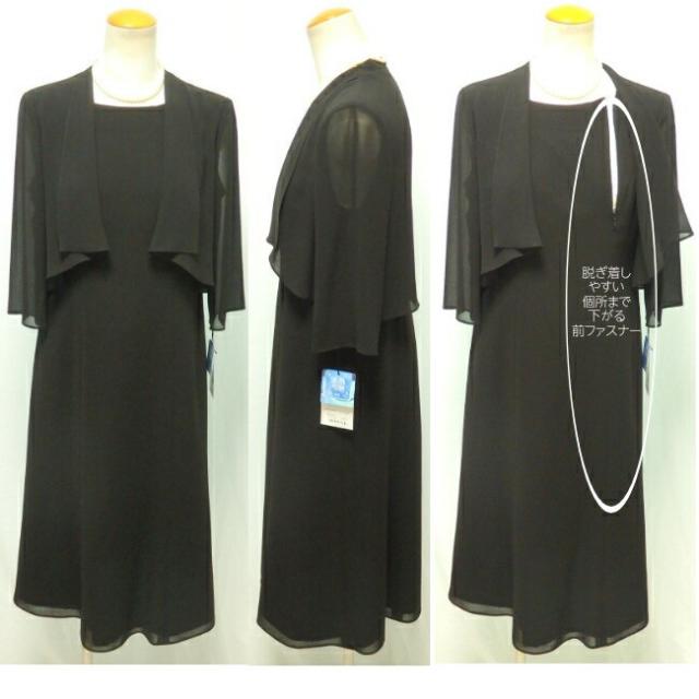 アンフィニノワール 羽織風ワンピース 自宅で手洗い ウォッシャブル 前ファスナー 接触冷感 上質 シフォン サマーブラックフォーマル