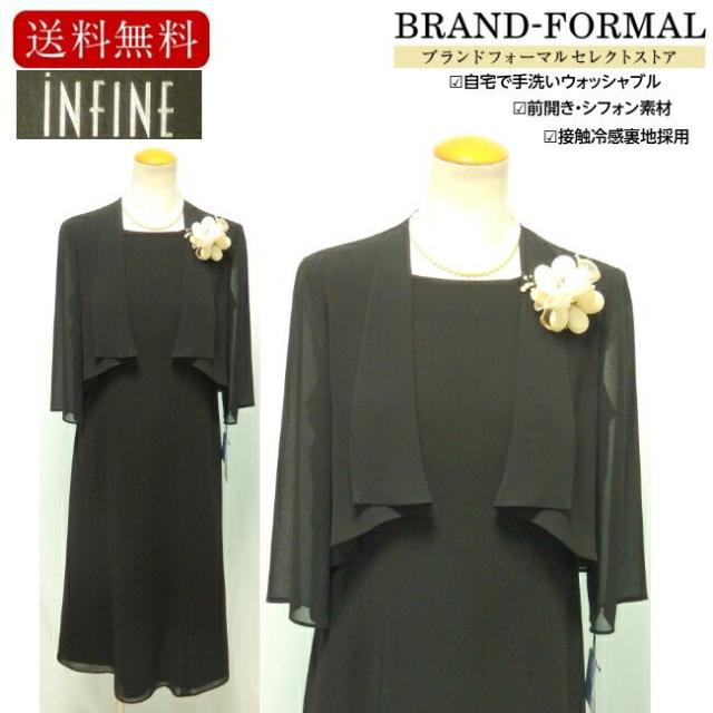 | iNFINE NOIR アンフィニノワール 羽織風ワンピース 自宅で手洗い ウォッシャブル 前ファスナー 接触冷感生地採用 上質素材 シフォン素材 ワンピース サマーブラックフォーマル |