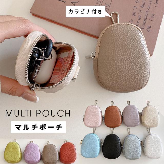 マルチポーチ カラビナ付きポーチ ミニポーチ 小物入れ ポーチ ミニポーチ コインケース 小さめ コインケース 小銭入れ 小物ケース おしゃれ オシャレ お財布ポーチ イヤホンケース イヤホン入れ フェイクレザー 充電コードケース リップケース 小物入れ くすみカラー